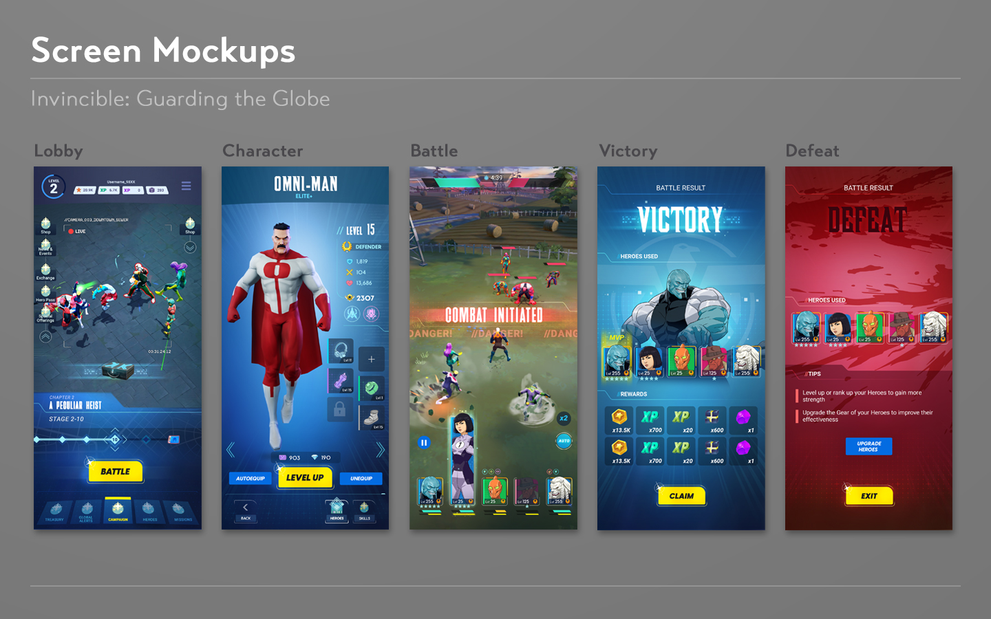 We were mostly focused on the UI design as the game was already well into production and so most of the layouts and flow were already set. However, as features were added and changed, and play testing revealed valuable information, we still needed to strongly consider UX as we created our design iterations.